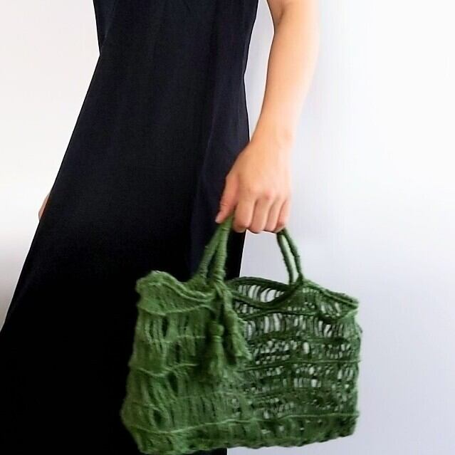 麻100%のマクラメ編みのトートバッグです。