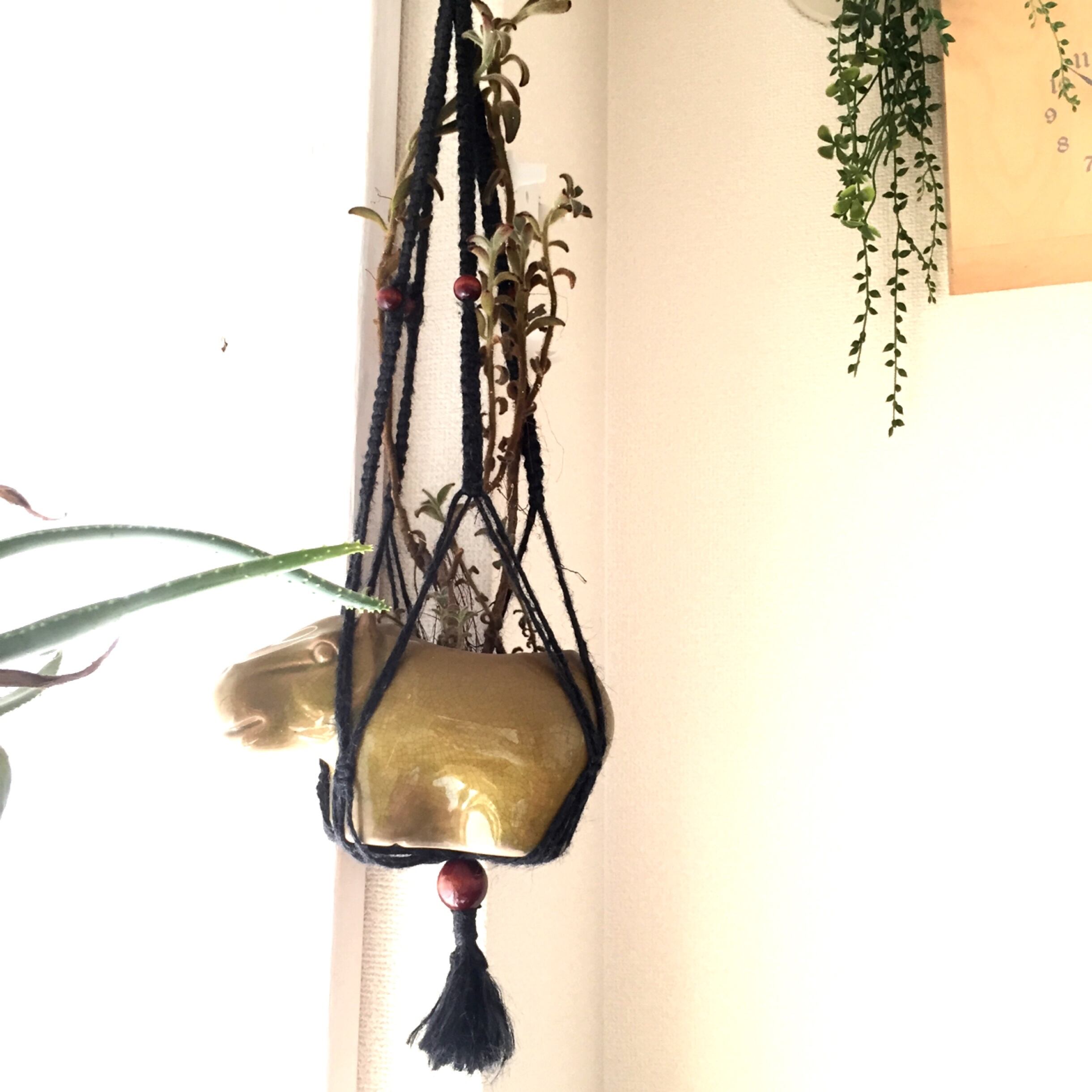 黒色の細身でモードな2段プラントハンガーです。