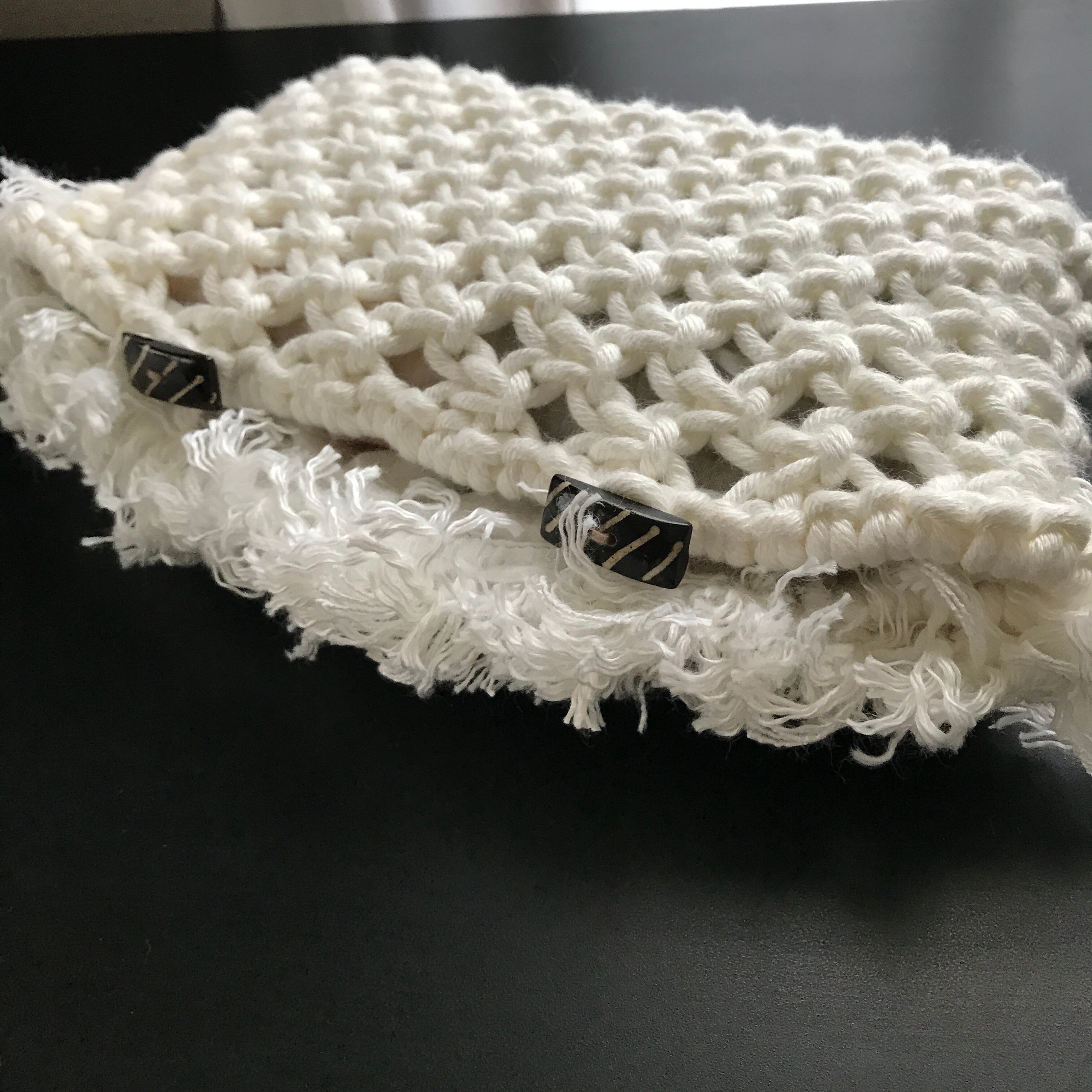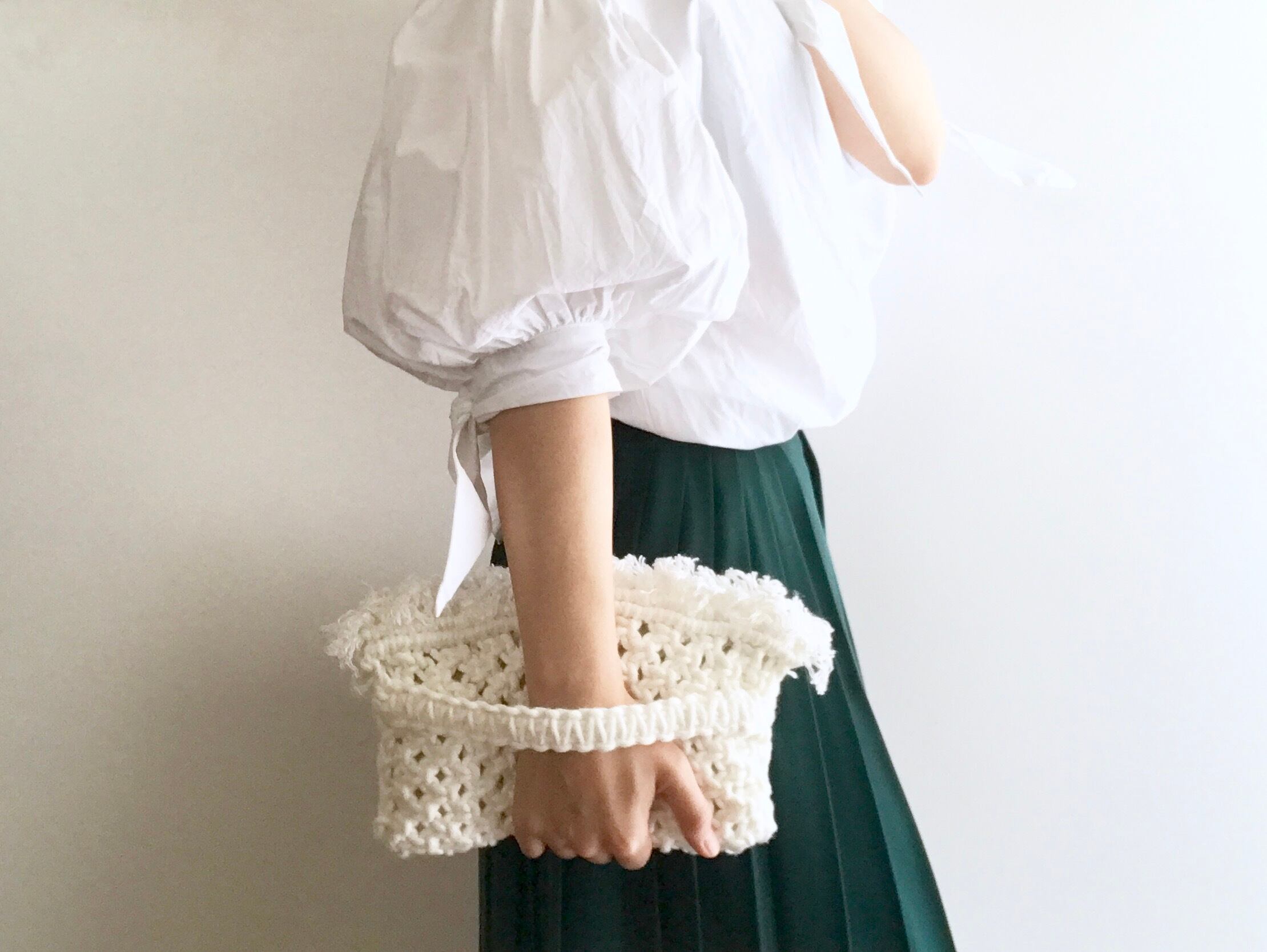 スッキリしたクリアホワイトが印象的なクラッチバッグです。