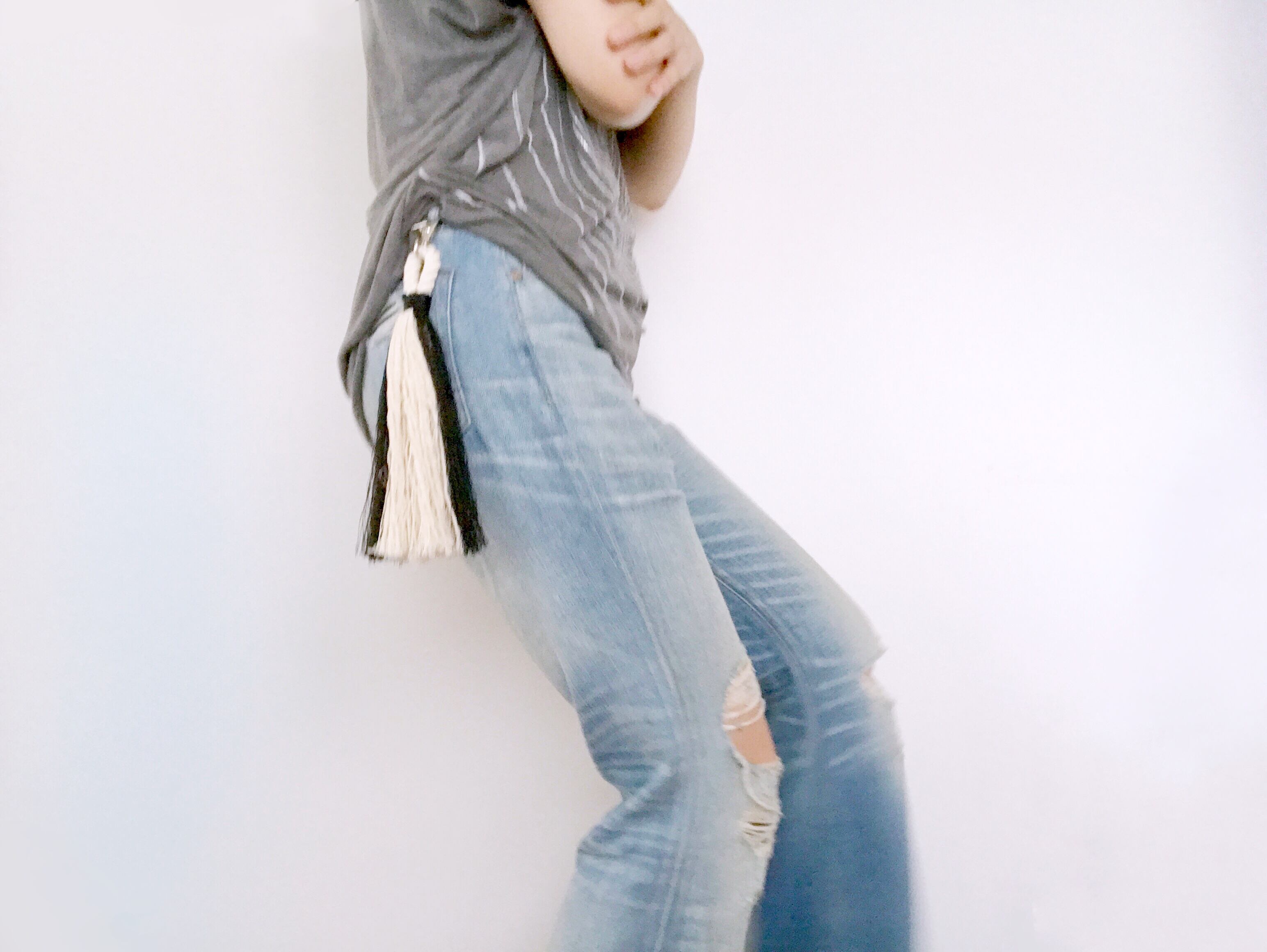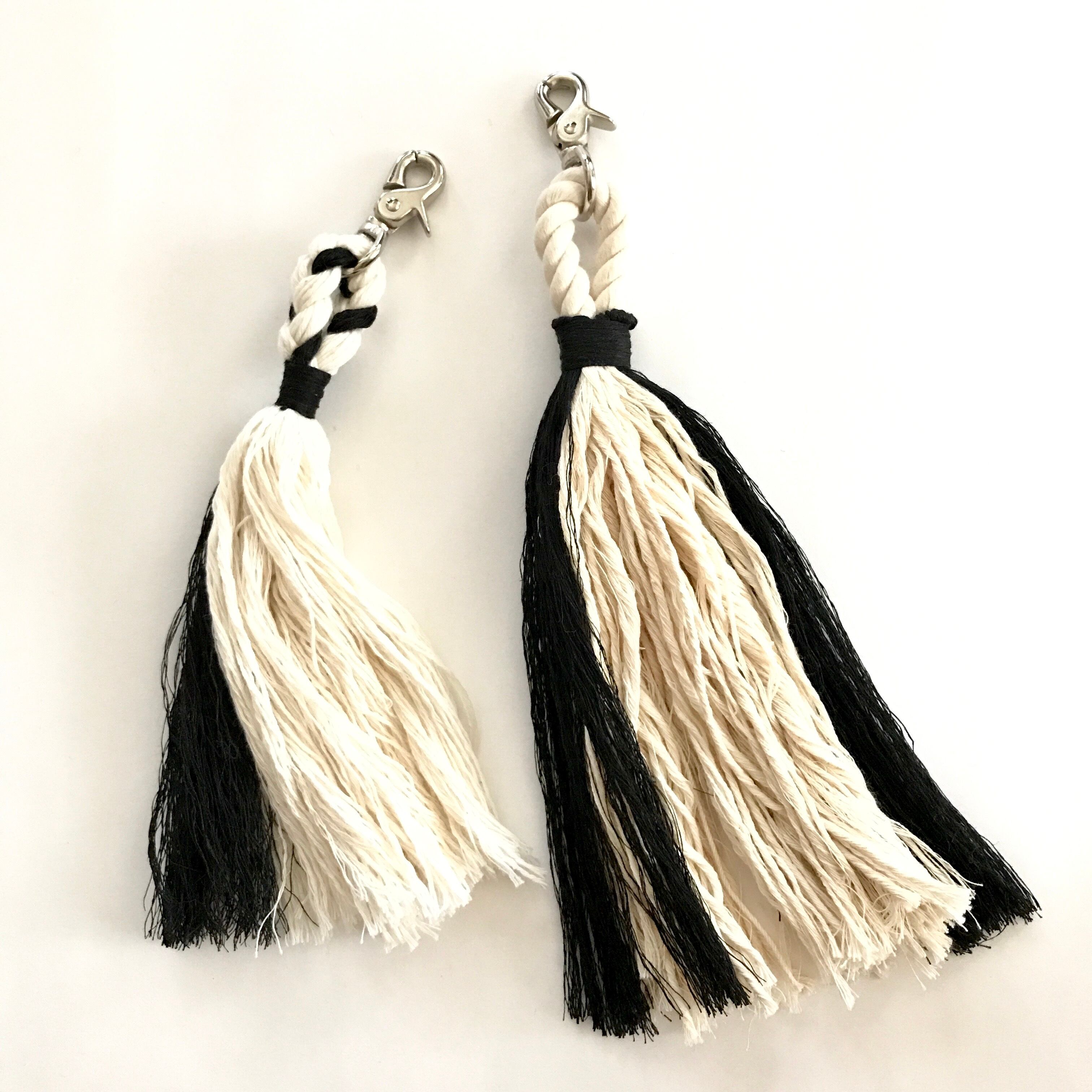 白のコットンと黒のフレンチリネンを、たっぷりと贅沢に使用したタッセルのチャームです。